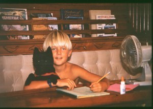 I home schooled my ten-year-old son during those years, and the dog was only allowed below decks to study alongside the boy.