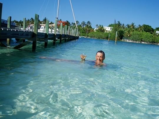 Then I really got lucky. One morning while listening to the Abaco Cruisers' Net, I heard about Buck a Book. Open Monday-Wednesday-Friday from 10 to 1 and staffed by Mimi Rehor and a string of volunteers, Buck a Book turned out to be a battered, turquoise shipping container plunked down under a palm tree in a muddy parking lot opposite The Conch Inn in Marsh Harbour, capital of the Abacos. Mimi accepts book donations and sells them to sailors like me for a buck each, all to benefit the gravely endangered wild horses of Abaco. (http://www.arkwild.org — there are only five horses left! – give early and often!) Inside the cramped, dimly-lit space, with a computer screen glowing bluely in one corner and a dissenting fan keeping the stagnant air gently moving from another, I checked out the shelves: Steven King, James Patterson, Michael Critchton, Patricia Cornwell, Nora Roberts and the usual suspects were there, for sure, but I'm happy to report that books written by authors I actually KNOW were more than generously represented on Mimi's shelves. I greedily stocked up on Denise Swanson, Christopher Fowler, Nancy Martin, Jerrilyn Farmer, Chassie West, Donna Andrews (how on earth had I missed Click Here for Murder?), Andrew Taylor and half a dozen more, paying for them with a twenty dollar bill, and please keep the change, Mimi.