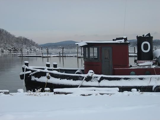 For the third time in as many weeks I'm rising to find the world coated white. First 20″, then 6″ more, and so far this morning there's another fresh 12″ and still falling. There are ice flows on the Hudson River and aside from a single plowed path, the boatyard is slowly starting to resemble a small glacier with waist-deep drifts surrounding the shed. Along the docks the high wind has kept the accumulation lower, but for those of you in warmer climates, here's a picture to show you what you're missing.