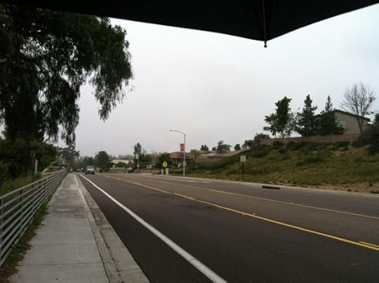 So, I started my day with the walk part of the challenge, heading out around 9:15 AM. I had library books to return, so I loaded them into my backpack, along with my iPad, a notebook, and a bottle of water (and of course my wallet!) and out the door I went… only to discover it was raining, ever so slightly. It was just misting enough to be a problem, as I didn’t want to arrive at my destination (i.e. Starbucks) drenched. Thus I went back inside and grabbed my umbrella, then back out into the 55-degree day.