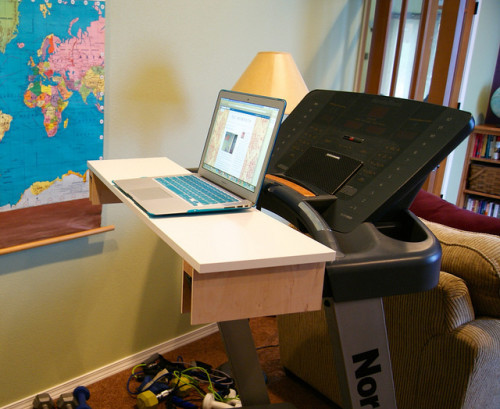I personally think the treadmill desk is a stupid fad, but for some of my writer pals, this exercise is just the right speed. The main drawback to using a treadmill desk is – you guessed it – procuring a treadmill. Luckily, lots of people tend to get ‘em for Christmas and have already gotten pissed off with the damn things by New Year’s, so you can probably find an inexpensive one on Craigslist right about now. If you’ve got a couple thousand bucks burning a hole in your pocket, you can buy a treadmill desk ready-made, but if you’re like most writers, you’ll need to DIY that shit. Here’s how to do it for under $20.