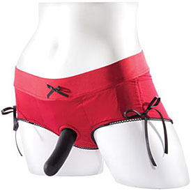 As you can see, this harness more closely resembles a cute pair of panties than a complex tangle of leather straps, which makes it quite easy to slip on and off.