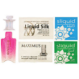 For $6 you get to try out 6 of their bestselling lubes, including Entice by Babeland, Sliquid Swirl Green Apple, BabeLube, Liquid Silk, Maximus and Sliquid Silver Silicone Lube.
