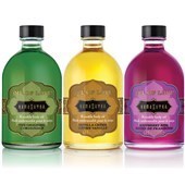 A great place to start with edibles is with flavored massage oils. The Kama Sutra brand sells a line of “love oils” that come in flavors like raspberry and vanilla. You can rub them onto your lover’s body, putting them in the mood with a sensual massage, and then enjoy licking it off. And, since they’re water-based, they also play well with latex condoms.