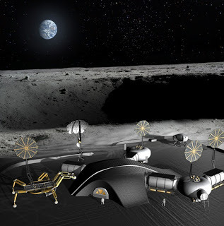 In a moment, we'll talk about the specifics of not one but two types of automated moon-building robots that would take as little as a week to build a full-sized human shelter out of moon dust, but in the meantime let's talk about how this effort could fit into a much larger, much grander plan.