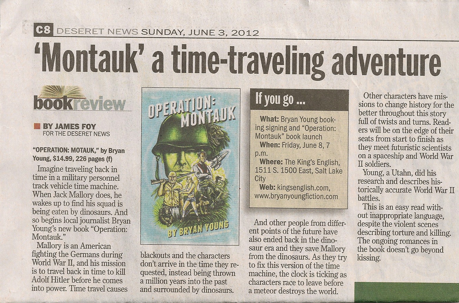 In advance of my signings this weekend (at The King's English and Dr. Volts (more to be announced possibly)), the second largest newspaper in Salt Lake City ran a review of Operation: Montauk.