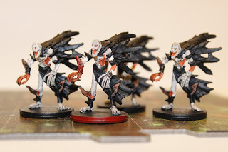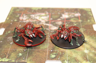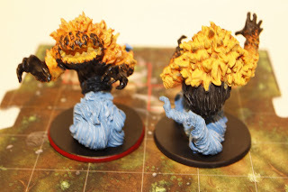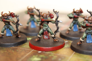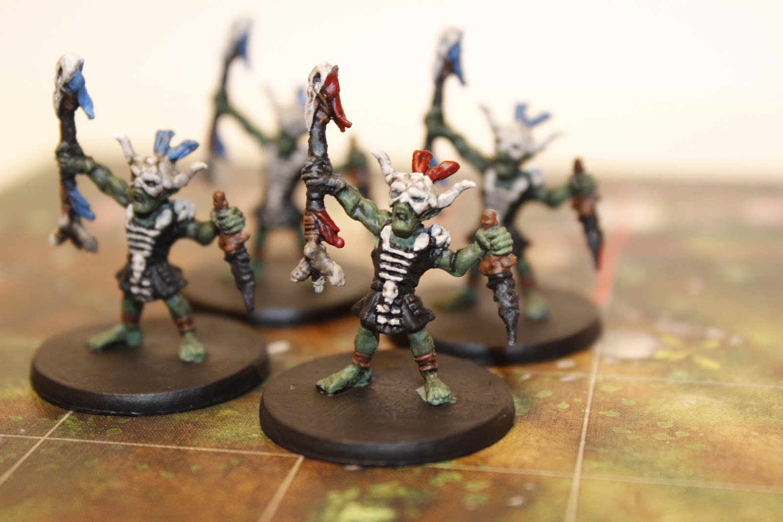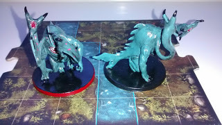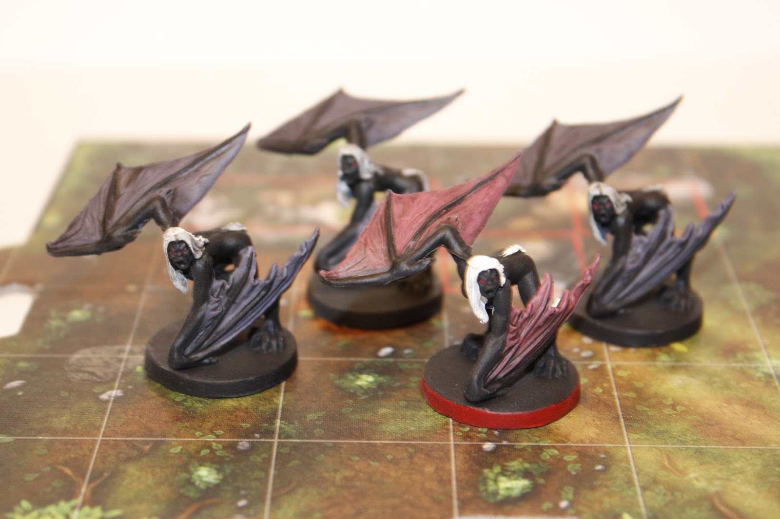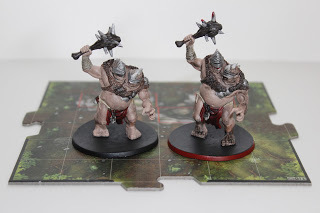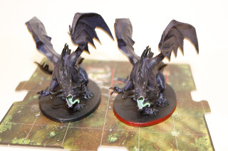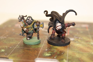 Continuing the series of posts showcasing my painted Descent: Second Edition miniatures, here are the heroes and monsters from two of the three available small-box expansions. Half the size of full-box expansions, each contains two new heroes and classes, two new monster groups, one new lieutenant, new quests playable alone or as a mini-campaign, and new game mechanics. I don't have the third, Manor of Ravens, but here's Lair of the Wyrm and The Trollfens. As mentioned in Part 1, the paint jobs and pics were done by my brother, except for three that I took with my camera (the three with too much flash).