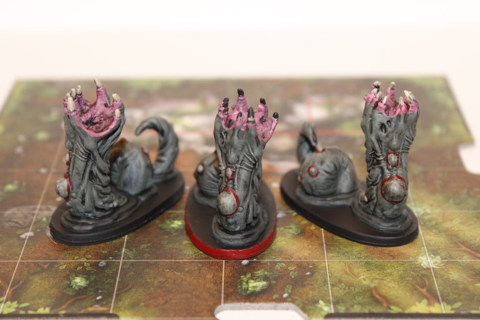 Tomble Burrowell (Gnome Scout)MONSTERSIn Descent, one player is called the Overlord and controls all the villains. Unlike the GM in an RPG, this player is actively trying to win the game. Each quest gives him options for which monsters to choose, all of which have their own strengths and weaknesses. Monsters of the same type are called a group, and the number of figures you're allowed to deploy from one group scales according to the number of heroes in play (2-4). One or two monsters from a group, called "masters," are stronger than the others and come as red miniatures; the others, "minions," come white. To reflect this, it's common to paint the masters' bases red, but Michael also added slight thematic differences where possible.