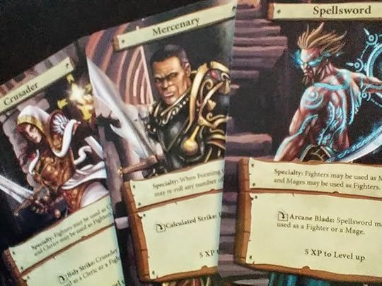 One of the new mechanics introduced in this campaign is the use of allies. Depending on which path the heroes choose, they will receive assistance from either a healer or a scout, with an opportunity to switch later on. Whichever is spurned then falls under the overlord's sway and becomes an evil lieutenant. As with the lieutenants in other expansions, these are represented by picture tokens unless you buy the Lieutenant Packs, which in this case include both versions of the character. The ally version includes a hero sheet, making them playable as heroes in any but this campaign. Both are pictured below, along with the transformed version of Ariad (I don't have the other).