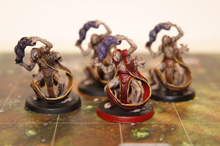 In this third post showing my painted Descent: Second Edition miniatures, I'll focus on both big box expansion: Labyrinth of Ruin and Shadow of Nerekhall. Each contains four new heroes and classes, four new monster groups, several new lieutenants, new quests playable alone or in a full campaign, and new game mechanics. As mentioned in Part 1 and Part 2, the paint jobs and pics were done by my brother, whose Etsy store of various geek-related crafts can be found here.