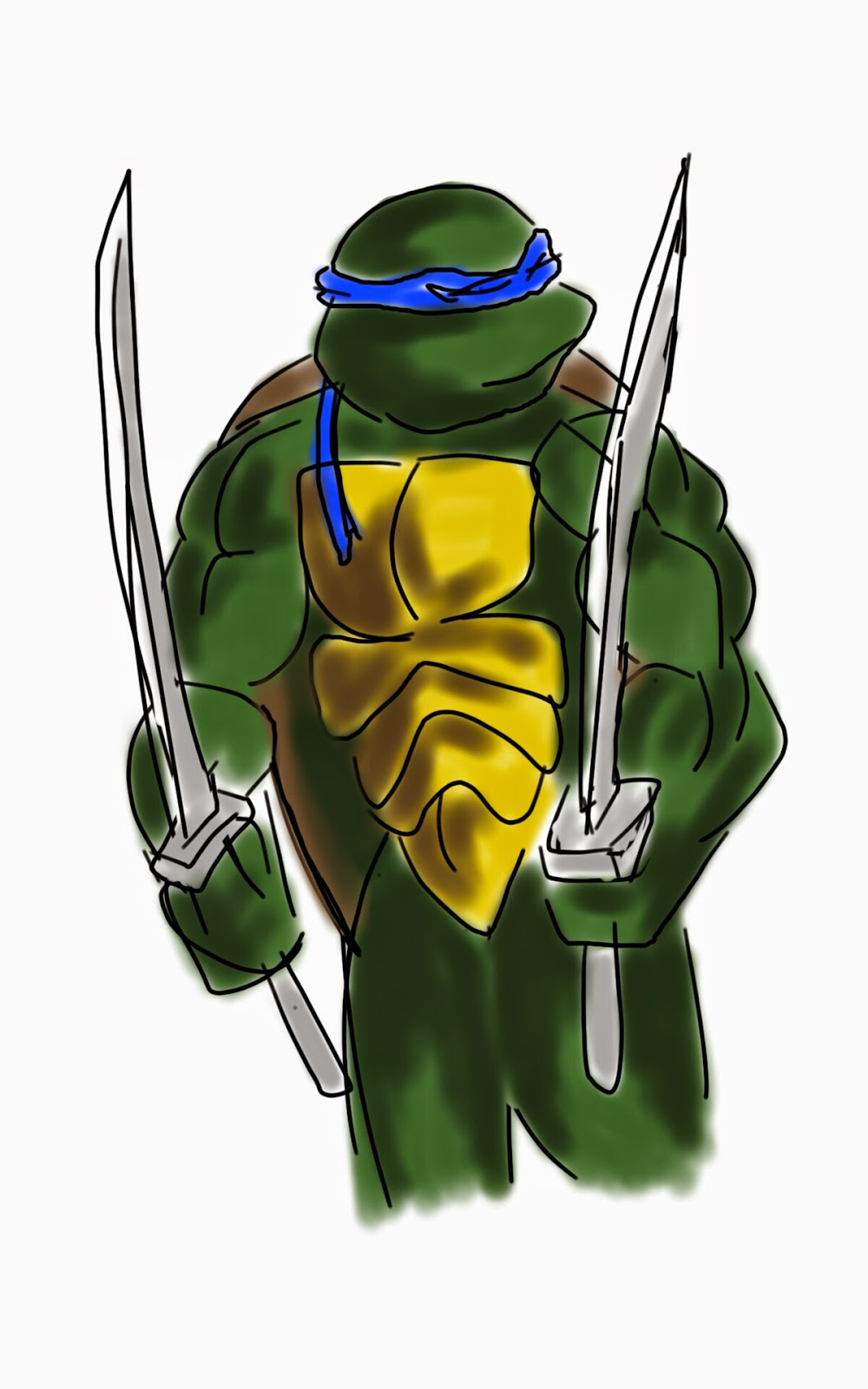 I sketched these with a stylus on my Kindle Fire as part of a silly "pre-game" ritual before seeing the new Turtles movie. That ritual also included re-watching the 1987 cartoon, re-reading the first three issues of the original Mirage comic book by Kevin Eastman and Peter Laird, drinking only out of TMNT cups, and attending the theater with my son in matching TMNT attire! I was aiming for a more realistic red-eared slider mutant with the top left and bottom, and felt rewarded when the baby Turtles were depicted as red-eared sliders in the movie (even though one character refers to them as box turtles).