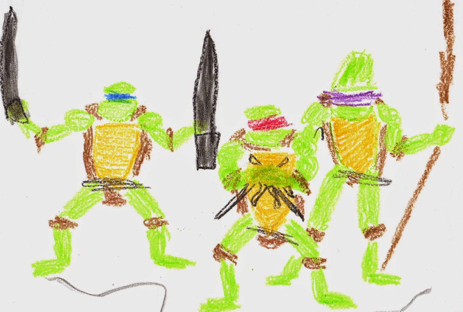 Meanwhile, my kids produced their own TMNT drawings. These predate the current Nickelodeon cartoon, which we love watching together, along with other shows and movies featuring animal characters. This phenomenon of reliving 80s popular culture with my own children is something I started writing about for various online publications and made a major focus of this blog.