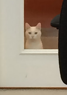 It's kind of hard to work with that little face looking out at you. Isn't he adorable? Every morning when I come to work, he meows and meows until I go in and visit him.