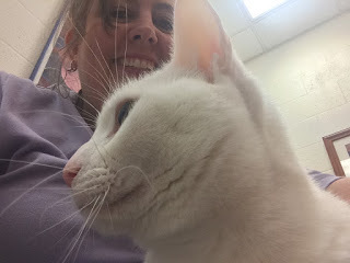When I started working at Cat Depot, a pretty white cat would greet me every morning, meowing until I entered his office. Once there, he'd sit on my lap and snuggle. Samson was my first Cat Depot crush, and I was unhappy when he was adopted. Though, I had only been there for a couple of weeks, and life went on.