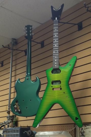 Once we'd seen all the manufacturing steps, our guide took us upstairs to see the Dean collection. I'm sure he said many interesting things about the instruments there, but I got sensory overload from looking, so I missed most of the information. LOL!