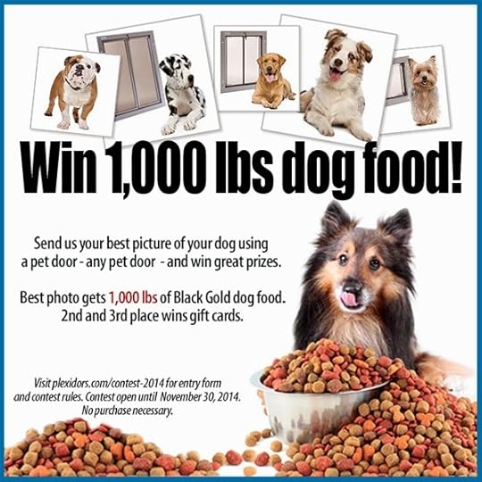 PlexiDor Pet Doors have a super-fun contest where you can win 1,000 lbs of dog food. I've been trying to visualize 1,000 lbs of dog food, counting the food bags I get for my doggie-gang, and it's hard to imagine. Freight is included in the prize; it will be delivered to your door. Would be a perfect thing to win and donate to a rescue.