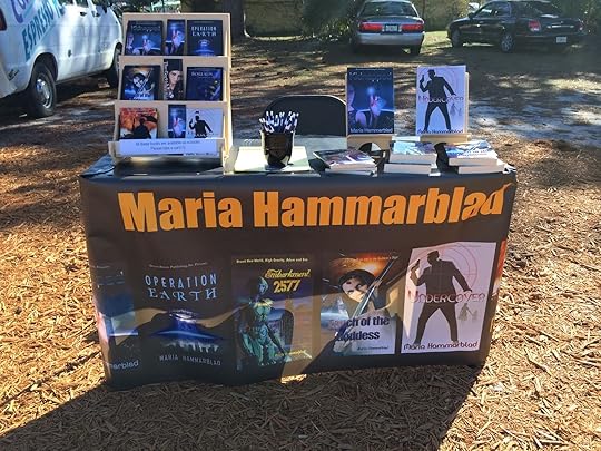 I had a great time at the Englewood book fair. Actually, I think it's the best one I've visited this far. They've been doing it for a few years and it showed; they had banners hanging over the roads, big signs showing the way, and good attendance of people actually interested in books. To make things even better, the weather gods smiled at the event. It has been cold for a few days - for being Florida - but Saturday was gorgeous. I don't have a tent, and I thought sunscreen would be enough. It wasn't. I returned home red as Santa's suit with huge white rings around my eyes from the sunglasses. Haha!