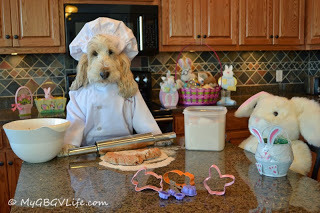Emma the GBGV (Grand Basset Griffon Vendeen, I think) is an extraordinarily talented dog. I mean, just look at this photo. I've told my dogs to go to the kitchen and bake some cookies with the reasoning that Emma does it. They look at me like I'm an idiot. Clearly I am the one supposed to provide cookies for them! Anyway, I met her online through her blog, and then I met her human at a blogger conference.