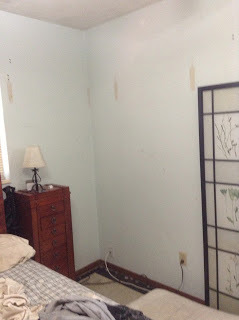 Today I decided to paint the bedroom. Why? Well, the walls looked horrible. I don't know what the people who used to live here was up to, but they left a mess.
