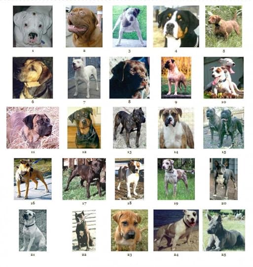 To round this discussion off, I found this interesting image. Here are 25 dog breeds. One of these dogs is a Pit Bull. I bet you that if any of them bites a human it's likely to be recorded as a Pit Bull bite, because people in general aren't trained to spot dog breeds. Seriously, I'm a dog person who works in the pet industry, and I did horribly on this test. I haven't even heard of some of the breeds before!