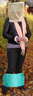 Rescue me, please! Or, at least come over and read Liza's hilarious blog. She has kidnapped both me and Kidnapped. In the most pleasant of ways, I must add.Leave her a comment. If she gets enough comments she might decide to let me go. The brown paper bag isn't too bad, and the cuffs are padded, but that is one big roll of rope around my legs. ;-)