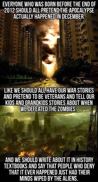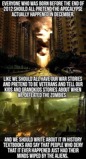 I've seen several predictions of 2013 becoming a year of turmoil, starvation, and international crisis. Blah, blah, blah. I personally don't like doomsday prophecies. Seriously; they usually only scare people without coming true, and if they come true, it's because they're self-fulfilling. I'm optimistic about next year.