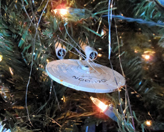 My husband is a collector, and he collects these little Star Trek ornaments. His birthday is early in December, and his sister used to buy one for him every year. I've taken over the tradition, making sure he doesn't miss anything cool. (Last year he got a Hallmark Cylon instead. It's a riot, it says all sorts of comical things.)
