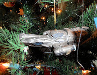 Now I know it's normal - Hallmark makes weirder Christmas stuff than I could ever have anticipated - but it was a cultural clash that one first time. Now I think it's awesome. I mean, I love spaceships and the tree wouldn't be the same without them. It just took a year or two for me to find them Christmasy. ;-)
