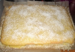 Stir all the ingredients except the coconut flakes together. You might need an extra dash of powdered sugar, depending on the size of your tablespoons ;-)The cake should cool some - if it's too hot when you put the frosting on, it'll be too gooey, but if it's too cold, it can be hard to spread the frosting.