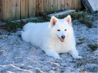 BooBoo Bear comes from the Bishop Shelter in Bradenton.Anyway, I thought, "Poor babies," and Mikey and I went to a shelter to pick up a dog. We came home with BooBoo Bear - he's an American Eskimo.
