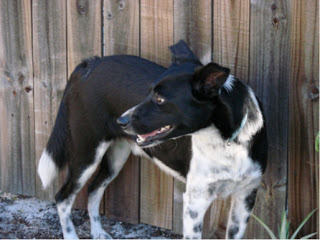 BooBoo Bear comes from the Bishop Shelter in Bradenton.Anyway, I thought, "Poor babies," and Mikey and I went to a shelter to pick up a dog. We came home with BooBoo Bear - he's an American Eskimo. I'm a big Border Collie lover, and this was the first time for decades I've lived in a house without one. I kept googling Border Collies, and stumbled over a webpage for a local BC rescue: Ewenity Farms, a Border Collie Haven.