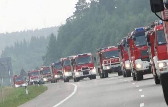 We've had firefighters from nearly a dozen different nations here to help. These trucks on this photo came up from Poland. Once they set wheels in Sweden, they had to drive for many, many hours to reach the areas where they were most needed.