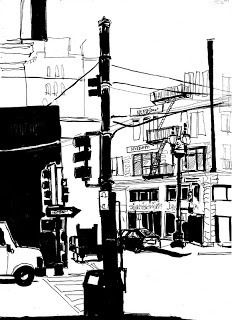 Thank you to everyone who came out to the Santiago Stays Book events at Books Inc and Tr!ckster Gallery.I'm working on sketches and final art for two books right now. I'll be posting soon from then, but for now some recent ink drawings of Union Square.
