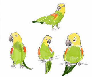 I am working on a picture book with Candlewick called Loro Mango. After getting my roughs approved and feedback, I'm now beginning the tight sketches. Here are some character sketches.