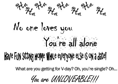 I've come to the conclusion that V-day is actually a cruel holiday, and not just for the single people. Here's why.