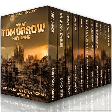 Titles in the boxed set include:Open Minds, Susan Kaye QuinnThe Moon Dwellers, David EstesPrison Nation, Jenni Merrittdaynight, Megan ThomasonStitch, Samantha DuranteThe Annihilation of Foreverland, Tony BertauskiThe Girls from Alcyone, Cary CaffreyThe Narrowing Path, David J. NormoyleThe Rain, Joseph A. TurkotVirulent: The Release, Shelbi Wescott External Forces (Bonus Chapters!), Deborah Rix
