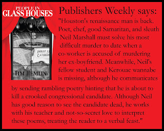 Author Tim Hemlin has returned with the 3rd installment of the Neil Marshall Mysteries! In June, IF WISHES WERE HORSES and A WHISPER OF RAGE were featured, and now Loving the Book is excited to share with you the next book called PEOPLE IN GLASS HOUSES - come join us on this tour!