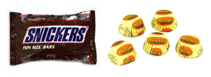 PB Cups have more protein, it's true, but more fat and calories that Snickers, so go with the Snickers on this one. And definitely avoid the Reese's PB Pumkins. Those things are loaded with calories, sugar, and fat.