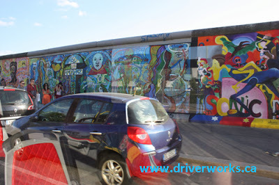 This section of the wall is still in its original position but is now protected from the 'woodpeckers' who came and chipped away sections of the wall for souvenirs and resale after 1989.