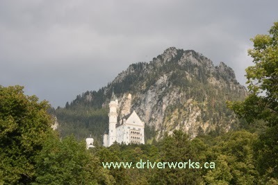 The front of the Neuschwanstein Castle is only visible by air from the opposite mountain, or in this glimpse from a nearby viewing spot. Walt Disney based his Sleeping Beauty Castle on this incredible German palace. He sent artists to Neuschwanstein to take photographs and to make sketches of the castle. When they returned to the U.S., they created the famous Disneyland castle from those images.