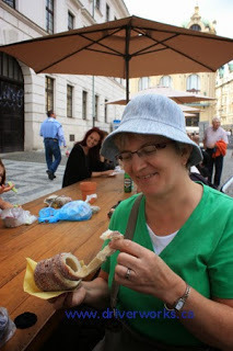 My author and Publisher Al also tasted wild boar sausage in the Prague marketplace.