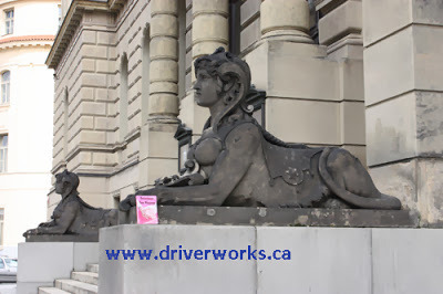 In Prague, we saw a likeness of Hermes . I love his winged headgear.