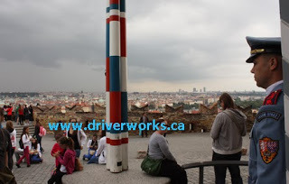 The view from the Prague Castle is really something to behold. Although this guard did a good job of pretending he didn't care so much about anything around him, my publishers enjoyed the view.