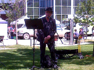 Proselytizing In The Park. A young man loudly shared his evangelical Christian views, while another man carried a cross that stated "Are You Ready?' and another videotaped the speech and surroundings. At one point, a vendor had a chat with the speaker. She was obviously not happy about the effect the loud speech was having on her nearby farmer's market stall.