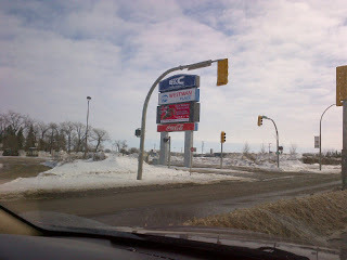 We've arrived at our destination - Keystone Centre in Brandon, Manitoba. Signs announce the six-day fair.