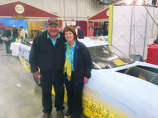 Allow us to introduce you to our supper companions and newfound friends. Above is Kevin and Gwen Therres of Prairieland Motorsports of Humboldt, Saskatchewan - just a bit northwest of our home in Regina. Kevin is a mechanic. He and Gwen travel a lot to display their race car with a jet engine that sits RIGHT BESIDE THE DRIVER! Kevin tells us he has to wear five layers of clothing to ward off the heat from the engine that can go from 0 to 250 miles per hour in a quarter of a mile. Impressive.