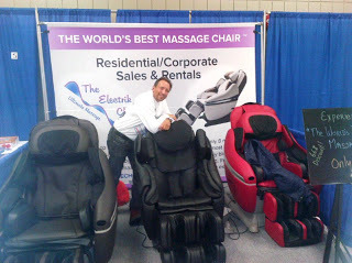 This is Clayton Cracklen, CEO (Chief Euphoria Officer) of The Electrik Chair Ultimate Massage, from Winnipeg, Manitoba. Clay has quite a sense of humour (as you can tell from his job title) and he is spending his time at the fair inviting unsuspecting - and some even willing - customers to take a load off and check out the relief provided by the Ultimate Massage Chair. And no, you won't get an electric shock if you sit in the chair. It's a clever play on words - kind of like DriverWorks Ink.