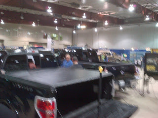 And this young woman (doing her best impression of Vanna White from Wheel of Fortune) is Lisa Huber, the Kitchener, Ontario, resident who spends her days selling an exceptionally comfy mattress for horses. That's right - a mattress for horses! The Promat company has a mattress for cows, too, but that is for another show apparently. If you stop by Lisa's booth, you will be invited to not just step on the mattress, but to stand on it with both feet. That's the best way to feel the effect of the padding, which can lead to a happier and more productive horse, we're told. You learn something new every day. And here are some other sights from Day One: