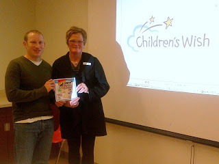 Wish Co-ordinator Stacey Driedger (left) and Chapter Director Gay Oldhaver (seated centre) spoke to the group about the details of granting wishes. They also thanked them for their referrals of sick children and answered questions about the Children's Wish Foundation in general. DID YOU KNOW?- The average wish costs $10,000.- The Saskatchewan Chapter is granting about 50 wishes a year but could double that amount if the funding was there. (Sadly, that's a lot of very sick children in a province of one million, isn't it?) Funding comes from corporate donations and fundraisers. We watched a video produced by Children's Wish Foundation. In it, a physician who works with sick children said: "I can treat these children but I want to heal them ... take them beyond the pain to hope." Another health care worker in the video said she loves what she does for a living. "It gives you a perspective of what a bad day is." Here's an inspiring music video that I learned about today. It's the Saskatchewan group Foxx Worthee singing Leonard Cohen's Hallelujah - raising money to help a little boy named Nixon get the health care help he needs. You'll be hearing more about their connection to Children's Wish Foundation in the coming months. And now back to our particular involvement with Children's Wish Foundation.... As mentioned, DriverWorks Ink donates to various charities from the sale of many of our books. When we asked Dave Driver, our son, if there was a particular charity that he would like us to consider with the publishing of his children's story