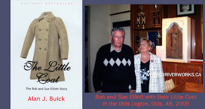 I was privileged to meet and talk with Sue and Bob during our launch of The Little Coat book from the Royal Canadian Legion hall in Olds, Alberta in November 2009. They connected with us by video, long before that became an everyday occurrence. Alan Buick and I were thrilled that the subjects of Alan's book could participate in our launch and visit with their family members and friends in the audience via video chat.